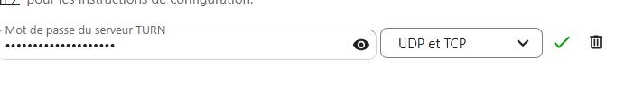 Ports ouverts : 3478 (STUN/TURN) et 5349 (TLS)