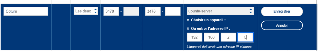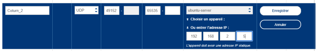 # Option avancée si NAT avec IP privée différente :
