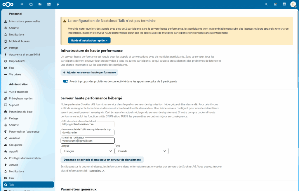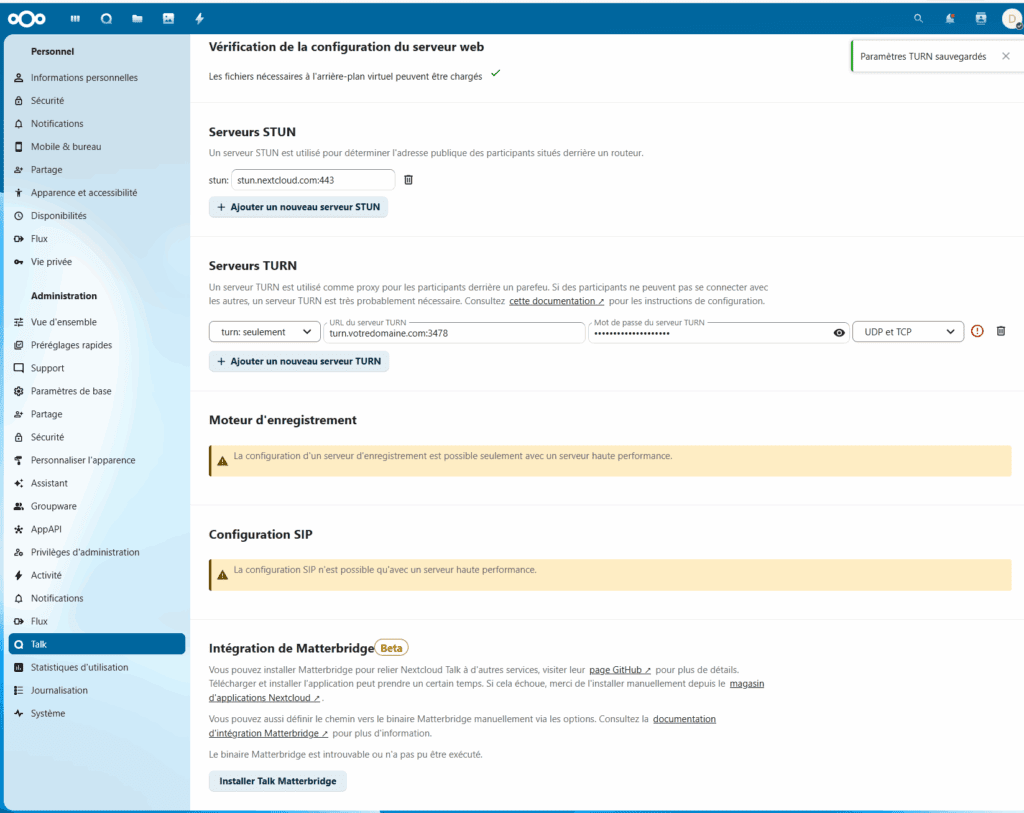 Configurer Nextcloud Talk
