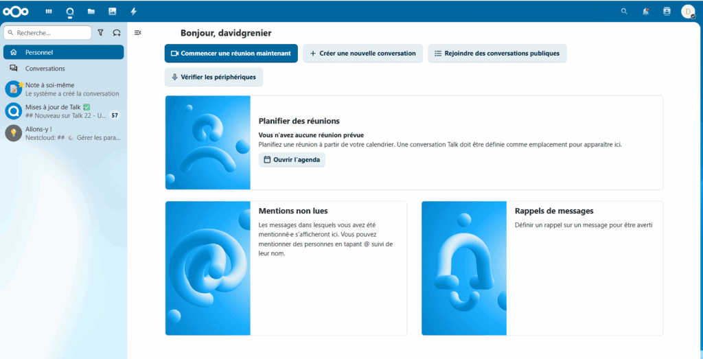 Vous aurez accès à Nextcloud Talk