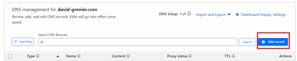 Créer un enregistrement A dans Cloudflare